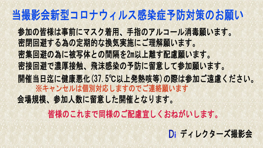 当撮影会感染予防対策のご協力よろしくお願いいたします。